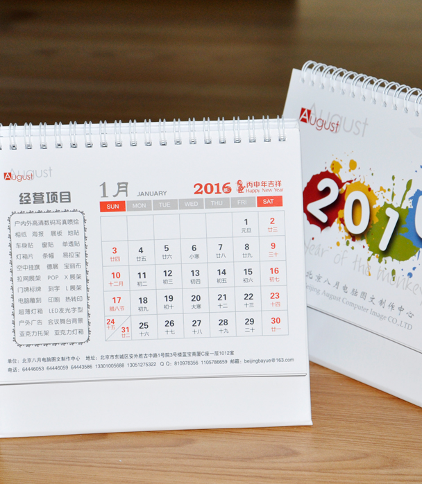 北京八月電腦圖文2016臺歷印刷