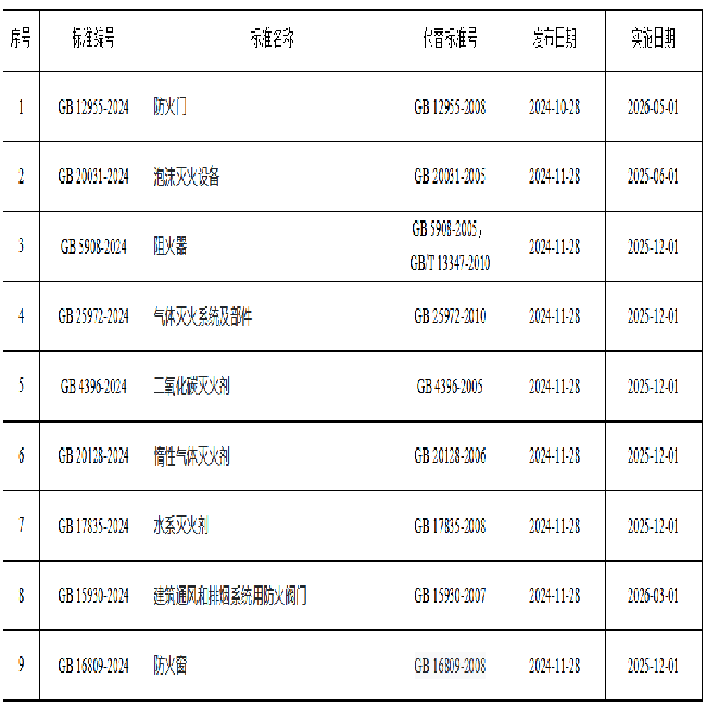 近日,應急管理部天津消防研究所牽頭起草的GB 12955-2024《防火門》等9項強制性國家標準獲批發布(2024年第26、28號中國國家標準公告)。新標準由國家消防救援局歸口管理,全國消防標準化技術委員會固定滅火系統分技術委員會、滅火劑分技術委員會、建筑構件耐火性能分技術委員會執行。標準的發布實施對于提升我國相關消防產品質量和安全性、統一行業規范、促進技術創新和產業升級、指導監管和執行具有重要意義。